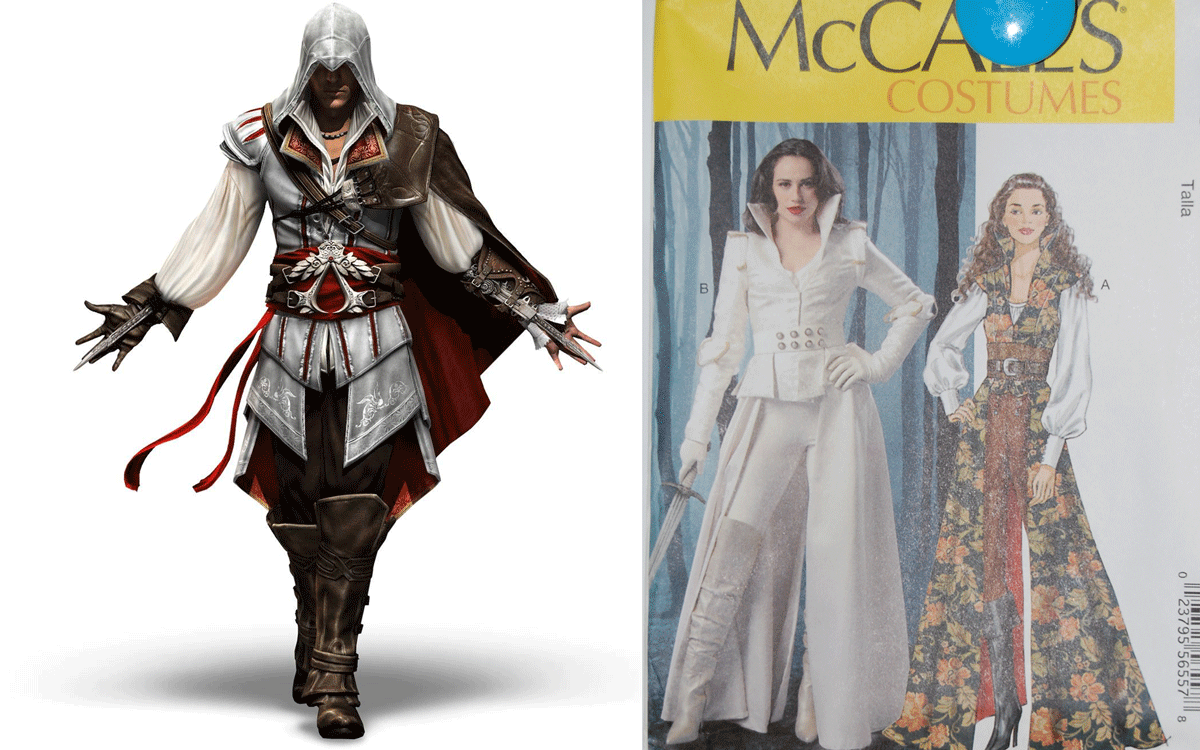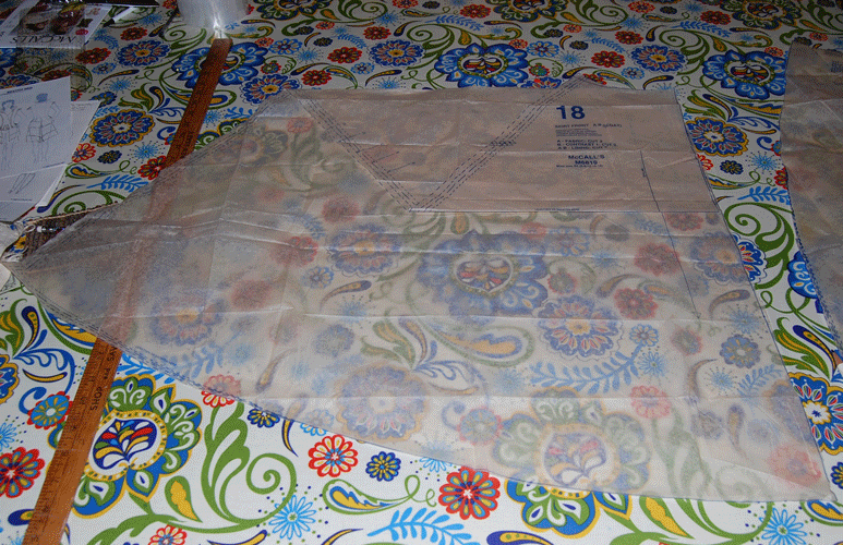 The next step was to alter the skirt pattern to create the shorter, angled skirt. Here’s the Ezio illustration as compared to the McCalls pattern:
