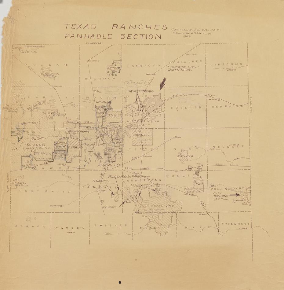 Harley True Burton’s 1927 thesis, A History of the JA Ranch, truly is the definitive work on the subject. The unattributed map that I found earlier this semester is from this thesis. His work includes annual data on the size of cattle herds from 1888-1925 that I can graph out. It’s possible that I may be able to at least sketch out some estimates of the number of cowboys employed at various inflection points (during the days of cattle drive, arrival of the railroads near to the ranch, and advent of the automobile.