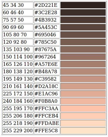 Skin tones from makehuman.org