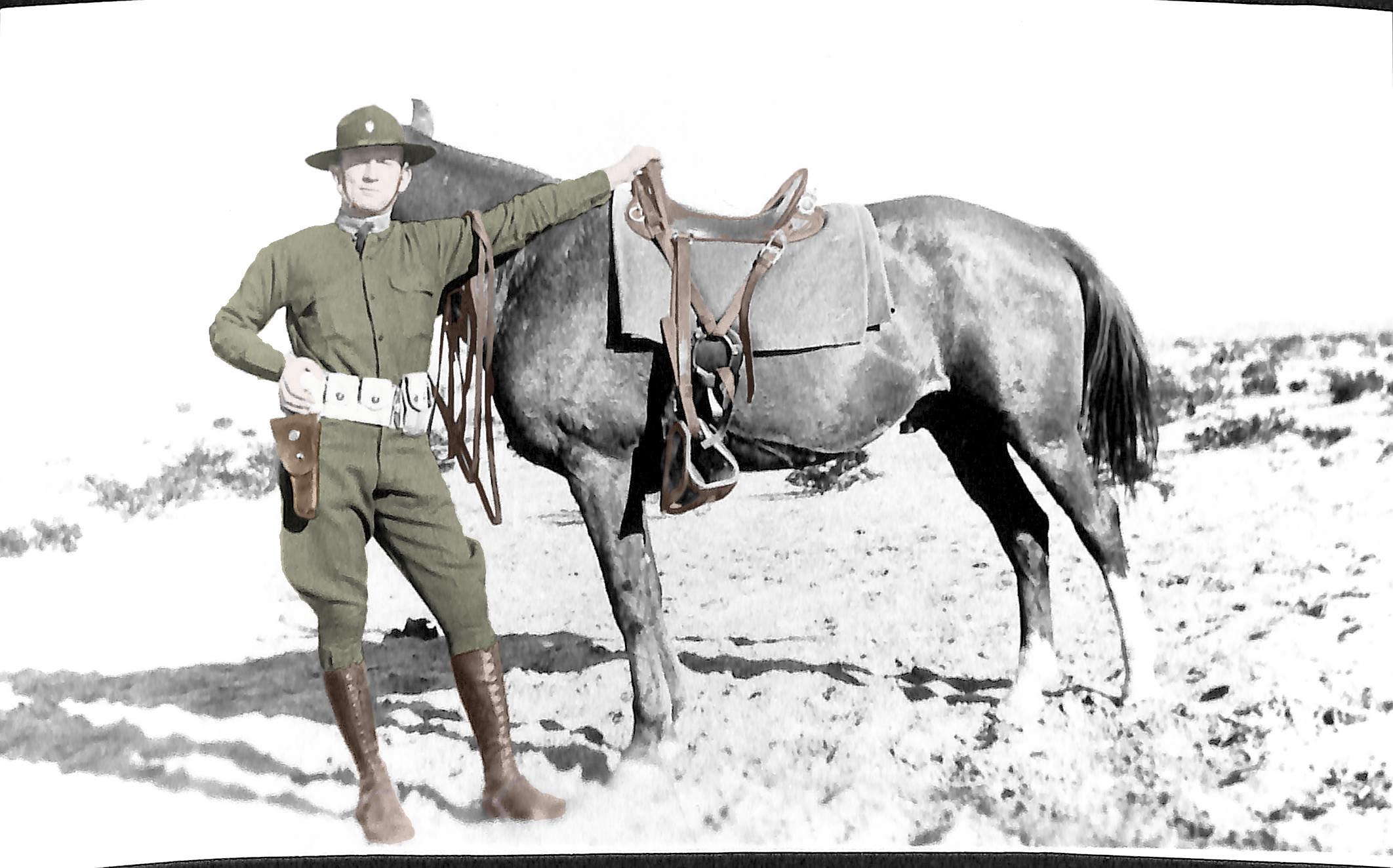 For this week’s exercise in colorizing photographs, I chose another photograph of Vernon Hofacket, taken while serving on the southern US border in the US Army.